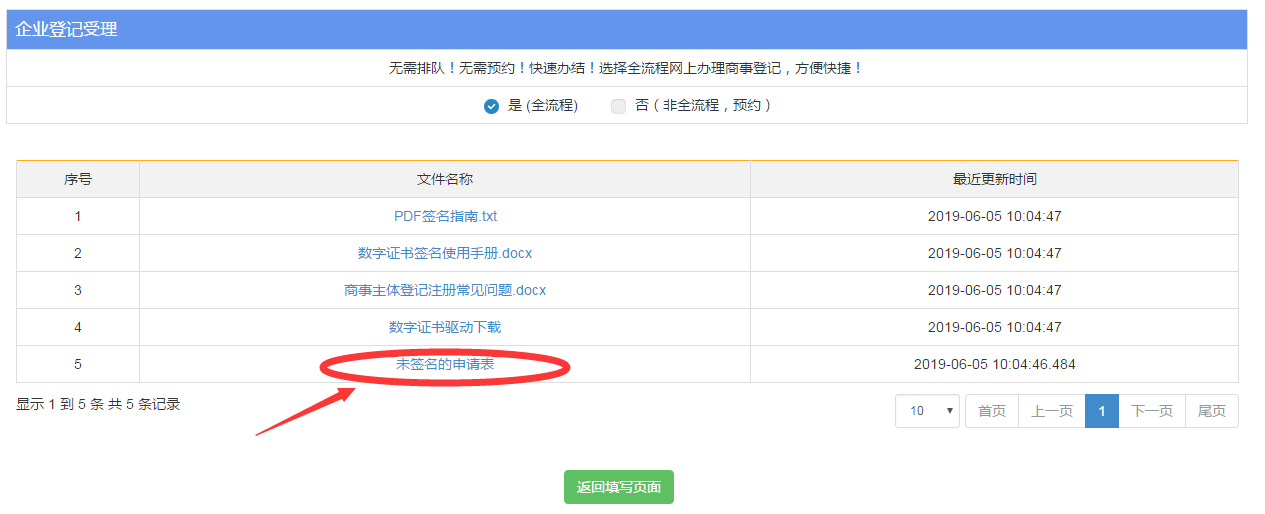 5、然后下載需要簽名的文件,使用U盾或者CA數字證書進行簽名提交,等待審核通過領取營業執照。